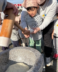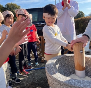 賑やかな掛け声の中でお餅つきを楽しみました🎶